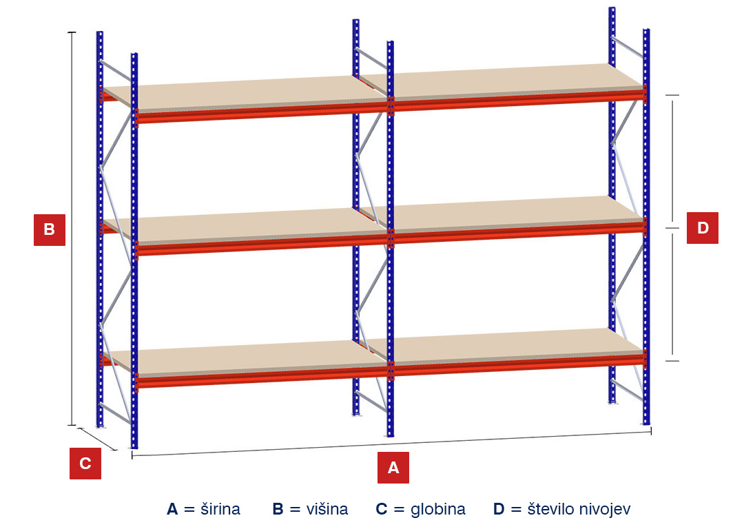 niz 2 x 195 cm/gl. 100 cm/H 300 cm/3 police/350 kg na polico/kovinsko polnilo