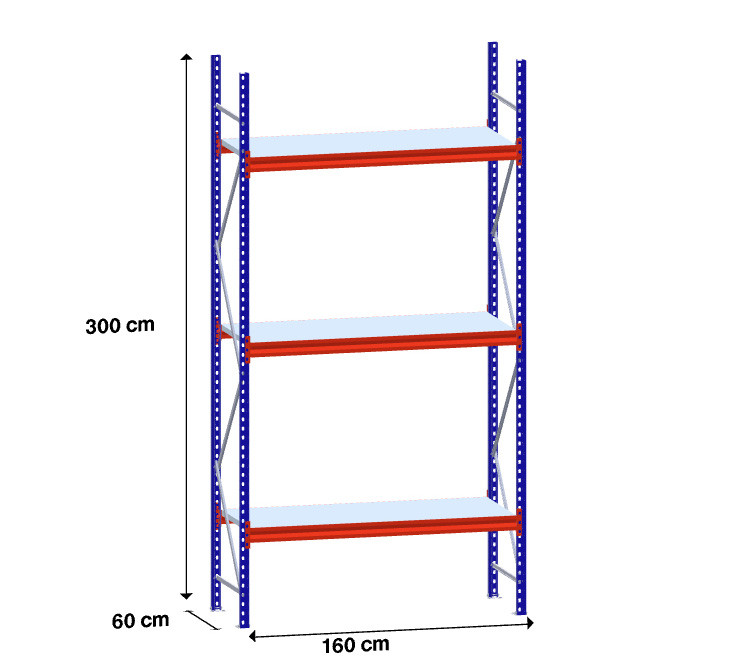niz 1 x 150 cm/gl. 60 cm/H 300 cm/3 police/500 kg na polico /kovinsko polnilo