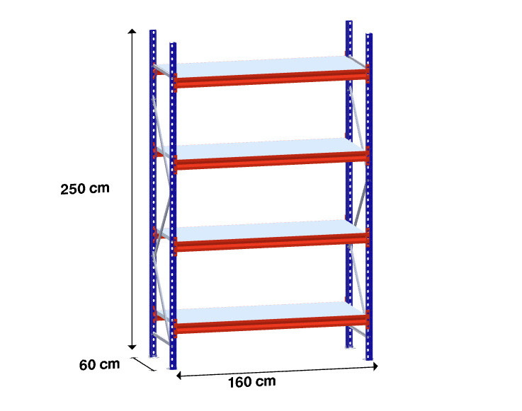 niz 1 x 150 cm/gl. 60 cm/H 250 cm/4 police/500 kg na polico /kovinsko polnilo