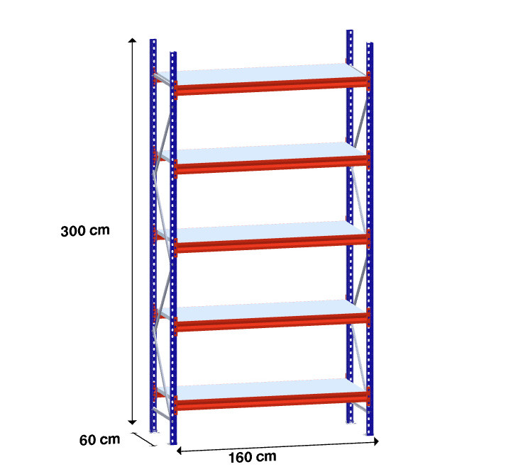 niz 1 x 150 cm/gl. 60 cm/H 300 cm/5 polic/500 kg na polico /kovinsko polnilo