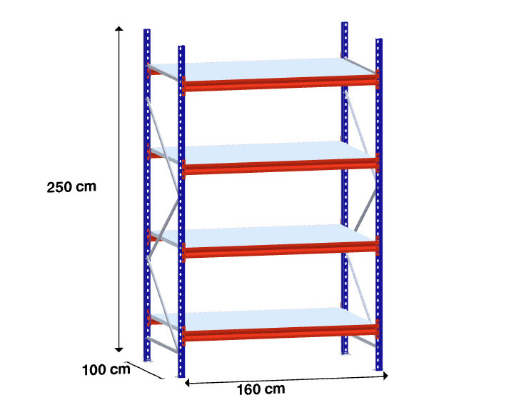 niz 1 x 150 cm/gl. 100 cm/H 250 cm/4 police/500 kg na polico /kovinsko polnilo