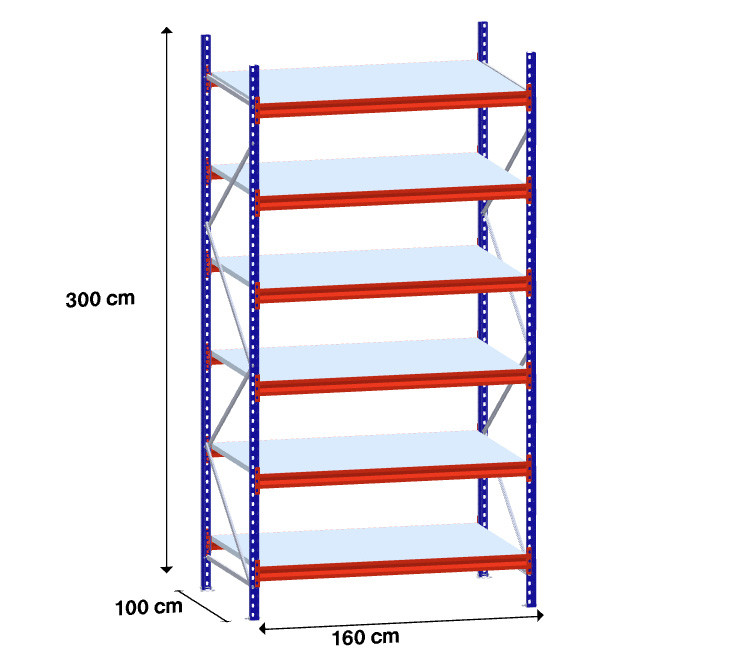 niz 1 x 150 cm/gl. 100 cm/H 300 cm/6 polic/500 kg na polico /kovinsko polnilo
