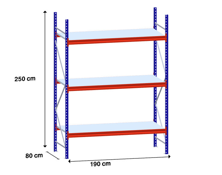 niz 1 x 180 cm/gl. 80 cm/H 250 cm/3 police/400 kg na polico /kovinsko polnilo