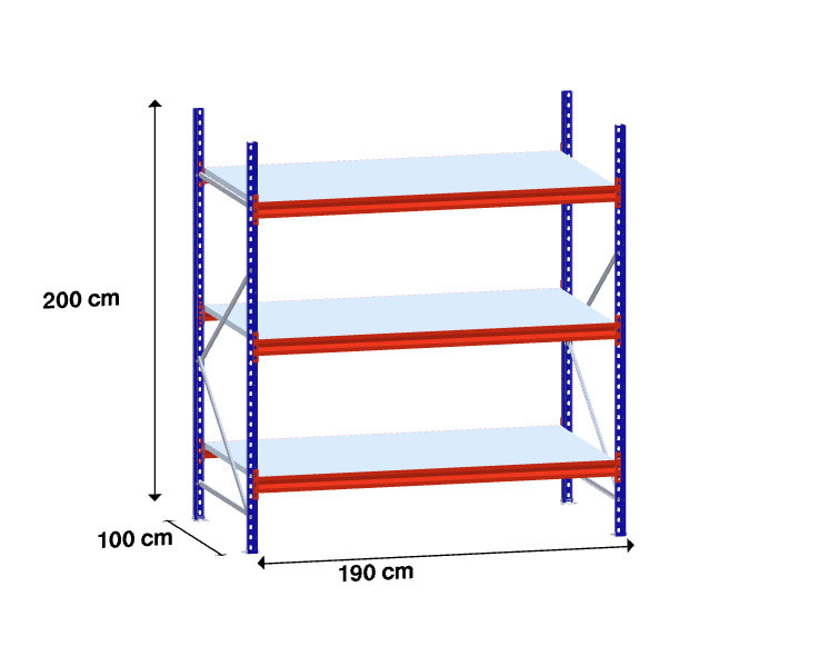 niz 1 x 180 cm/gl. 100 cm/H 200 cm/3 police/400 kg na polico /kovinsko polnilo