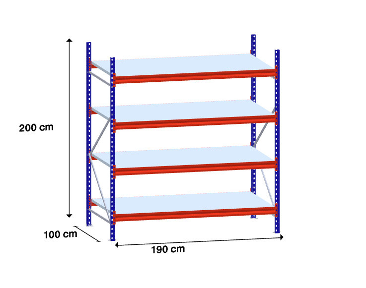 niz 1 x 180 cm/gl. 100 cm/H 200 cm/4 police/400 kg na polico /kovinsko polnilo