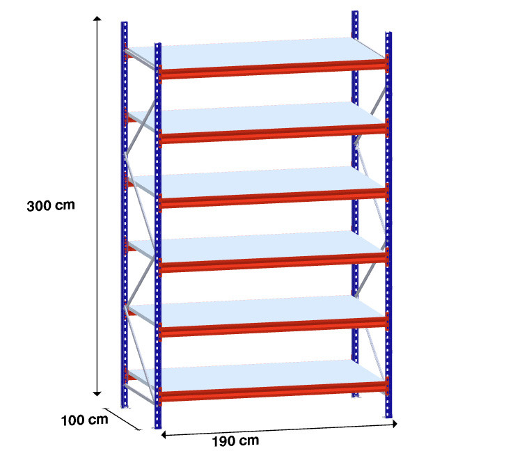 niz 1 x 180 cm/gl. 100 cm/H 300 cm/6 polic/400 kg na polico /kovinsko polnilo