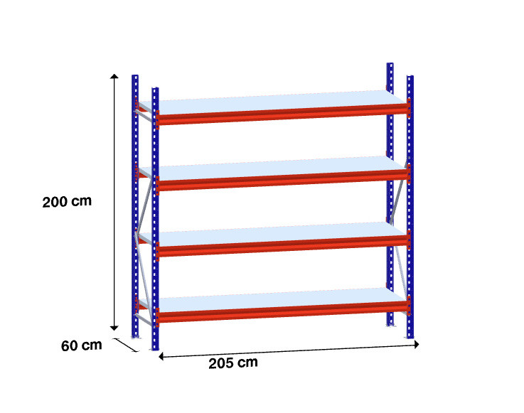 niz 1 x 195 cm/gl. 60 cm/H 200 cm/4 police/350 kg na polico/kovinsko polnilo