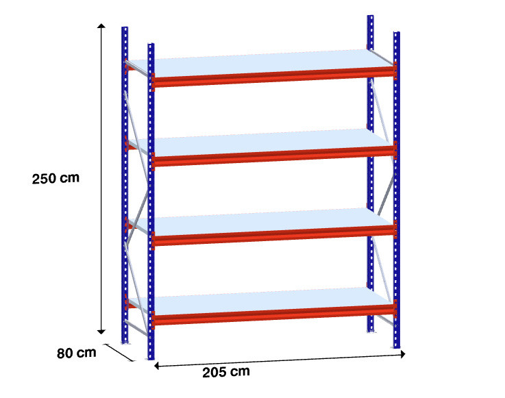 niz 1 x 195 cm/gl. 80 cm/H 250 cm/4 police/350 kg na polico/kovinsko polnilo