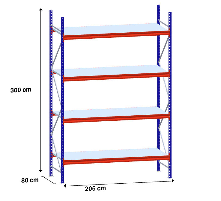 niz 1 x 195 cm/gl. 80 cm/H 300 cm/4 police/350 kg na polico/kovinsko polnilo