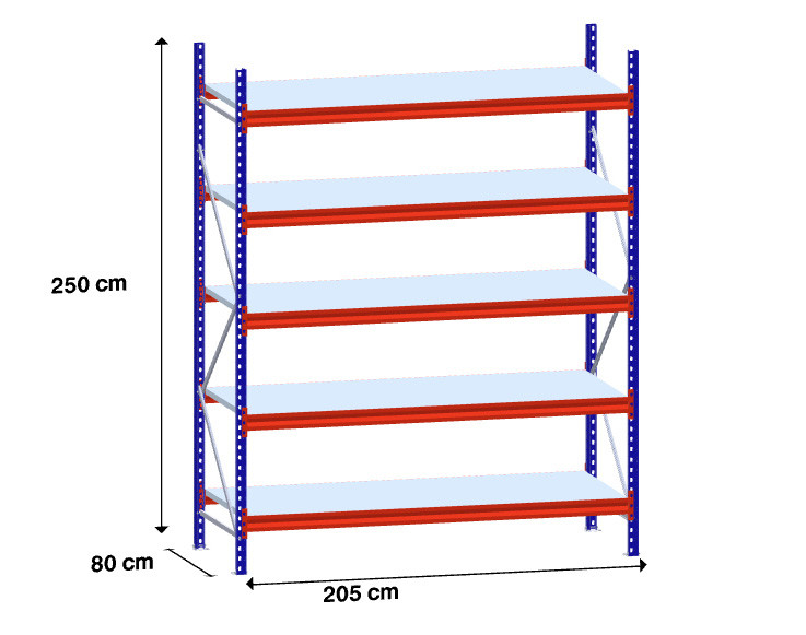 niz 1 x 195 cm/gl. 80 cm/H 250 cm/5 polic/350 kg na polico/kovinsko polnilo