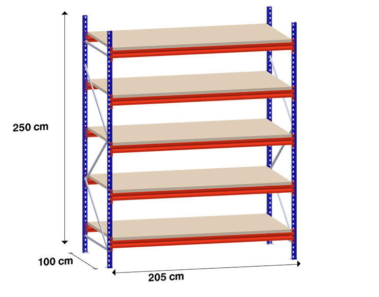 niz 1 x 195 cm/gl. 100 cm/H 250 cm/5 polic/350 kg na polico/iverno polnilo
