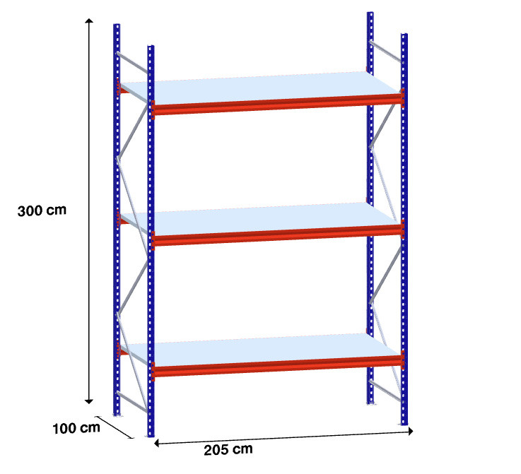 niz 1 x 195 cm/gl. 100 cm/H 300 cm/3 police/350 kg na polico/kovinsko polnilo