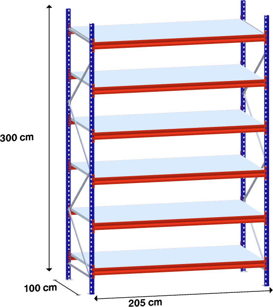 niz 1 x 195 cm/gl. 100 cm/H 300 cm/6 polic/350 kg na polico/kovinsko polnilo