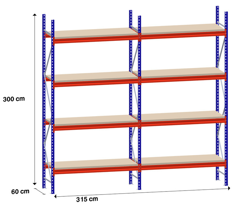 niz 2 x 150 cm/gl. 60 cm/H 300 cm/4 police/500 kg na polico /iverno polnilo