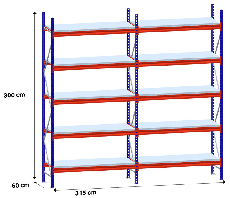 niz 2 x 150 cm/gl. 60 cm/H 300 cm/5 polic/500 kg na polico /kovinsko polnilo