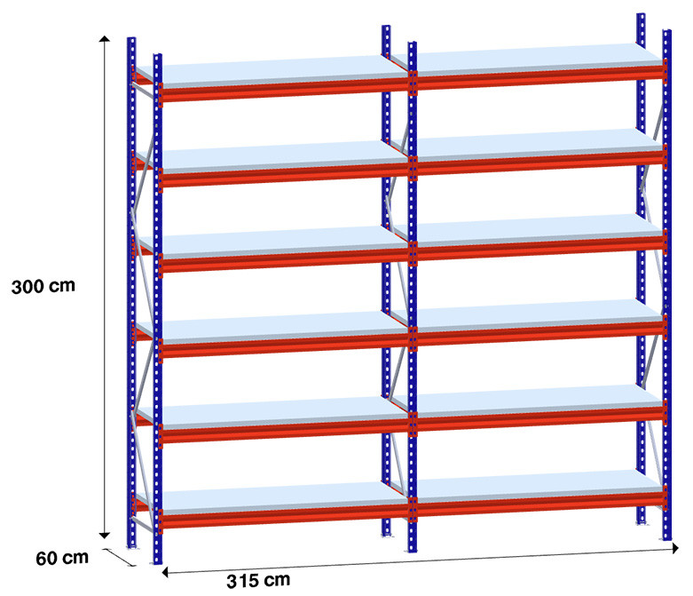 niz 2 x 150 cm/gl. 60 cm/H 300 cm/6 polic/500 kg na polico /kovinsko polnilo