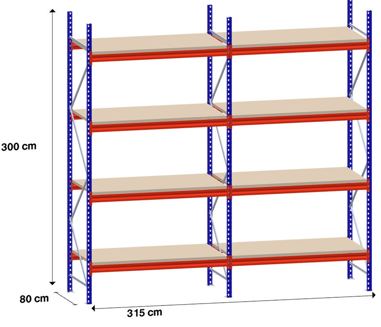 niz 2 x 150 cm/gl. 80 cm/H 300 cm/4 police/500 kg na polico /iverno polnilo