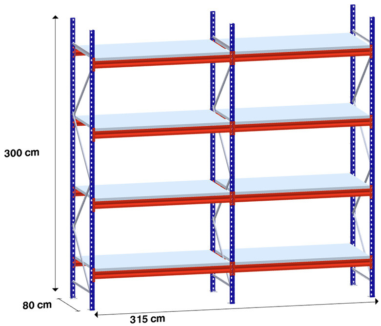 niz 2 x 150 cm/gl. 80 cm/H 300 cm/4 police/500 kg na polico /kovinsko polnilo