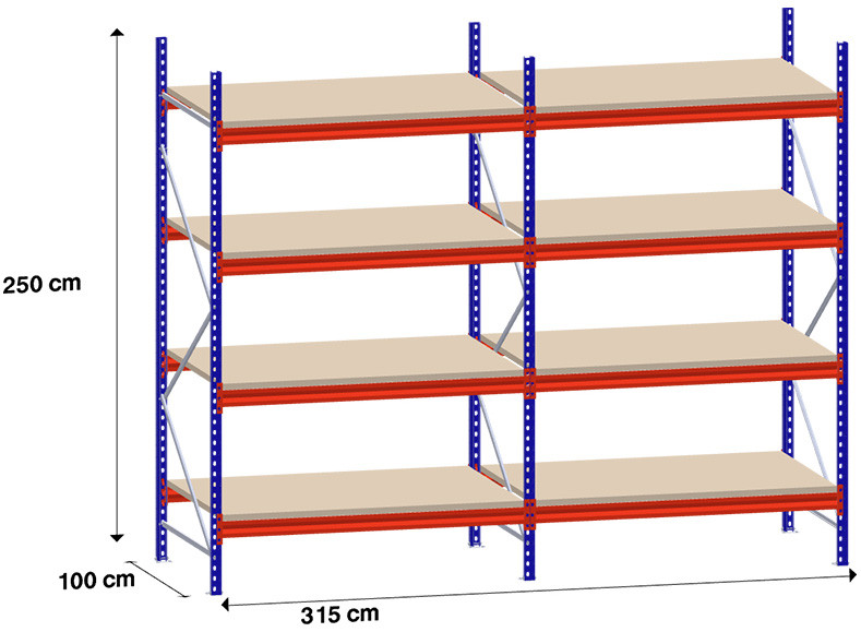 niz 2 x 150 cm/gl. 100 cm/H 250 cm/4 police/500 kg na polico /iverno polnilo