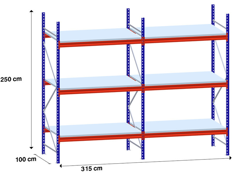niz 2 x 150 cm/gl. 100 cm/H 250 cm/3 police/500 kg na polico /kovinsko polnilo