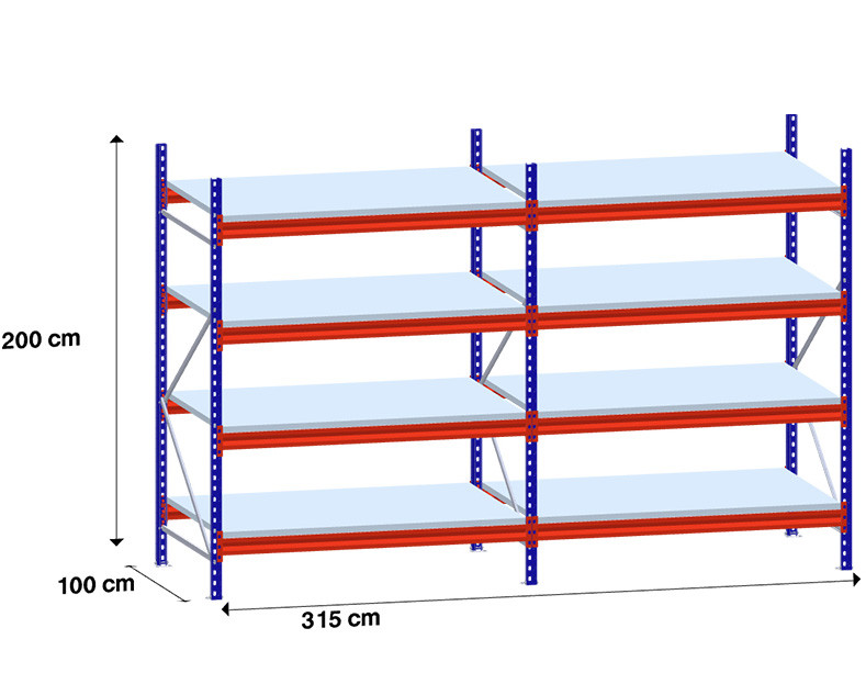 niz 2 x 150 cm/gl. 100 cm/H 200 cm/4 police/500 kg na polico /kovinsko polnilo