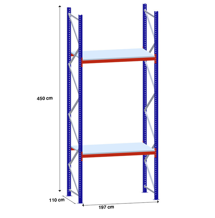 Ves montažni material kot so vijaki, matice, podložne plošče, varnostni zatiči, sidrni vijaki itd. so vključeni v ceno. Ob nakupu prejmete tudi navodila za montažo paletnih regalov.