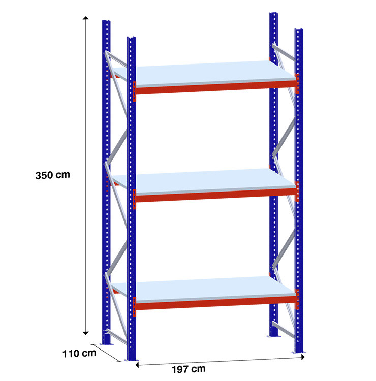 Ves montažni material kot so vijaki, matice, podložne plošče, varnostni zatiči, sidrni vijaki itd. so vključeni v ceno. Ob nakupu prejmete tudi navodila za montažo paletnih regalov.