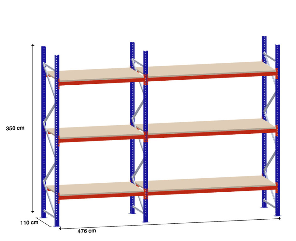 Ves montažni material kot so vijaki, matice, podložne plošče, varnostni zatiči, sidrni vijaki itd. so vključeni v ceno. Ob nakupu prejmete tudi navodila za montažo paletnih regalov.