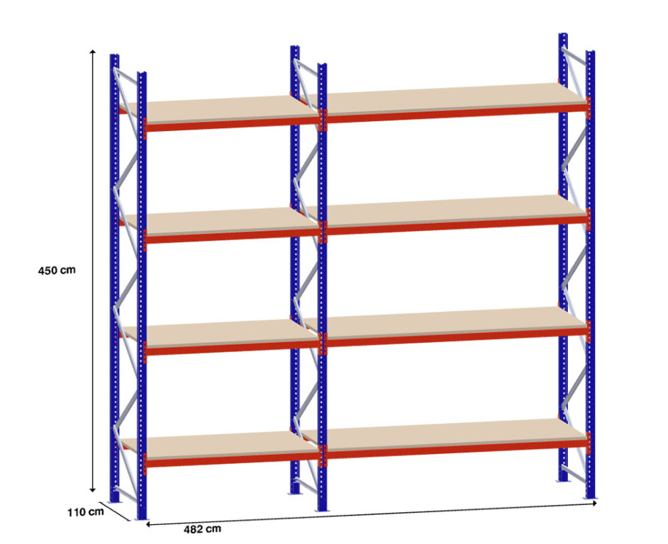 Ves montažni material kot so vijaki, matice, podložne plošče, varnostni zatiči, sidrni vijaki itd. so vključeni v ceno. Ob nakupu prejmete tudi navodila za montažo paletnih regalov.