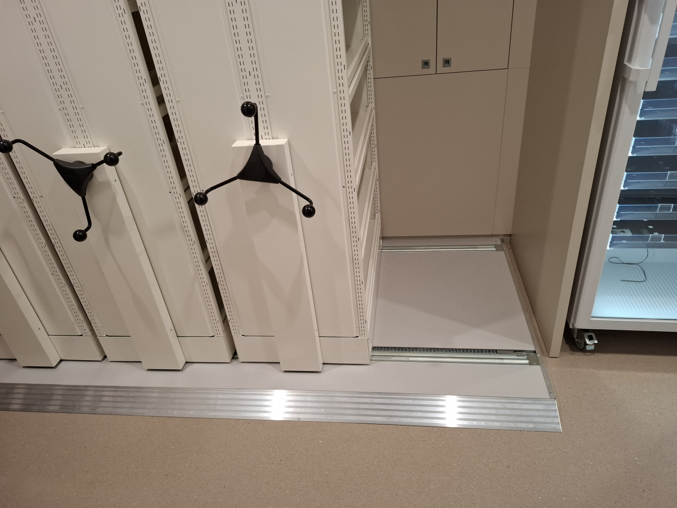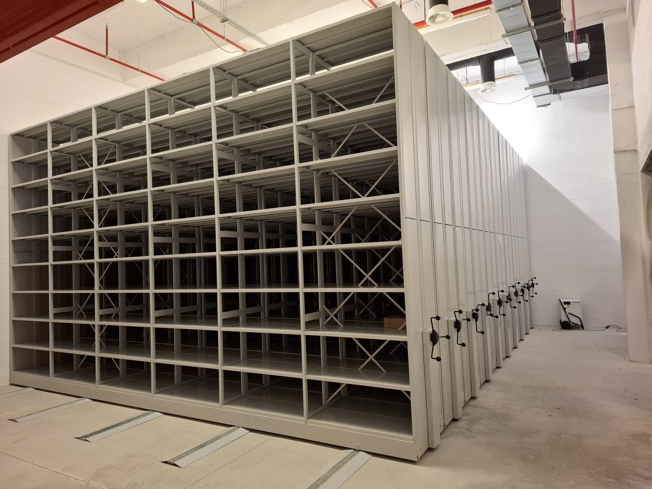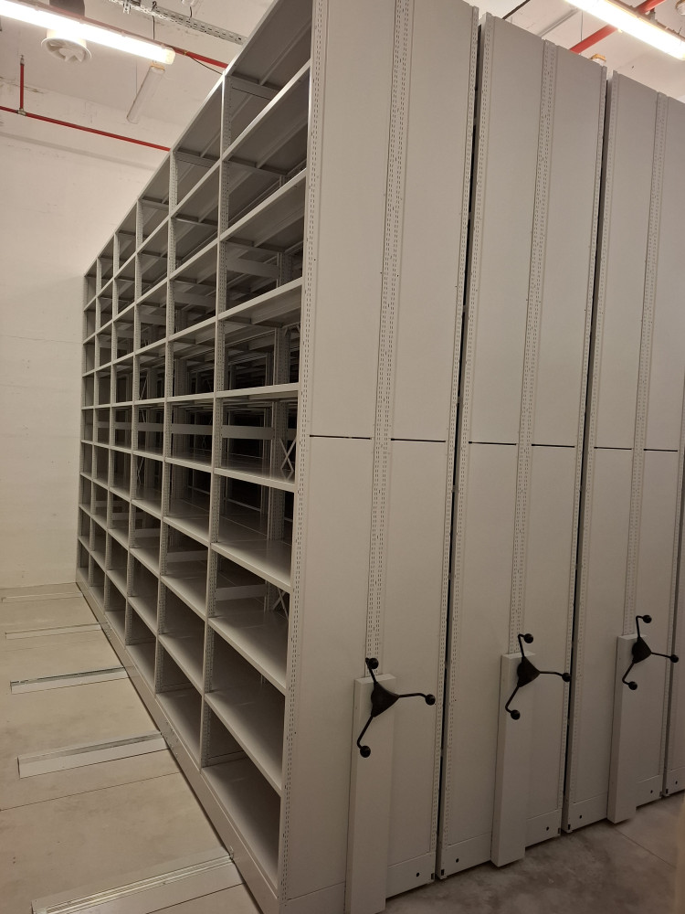 Projekt: Montaža premičnega regala FOREG s sprednjo in zadnjo zaporo police.