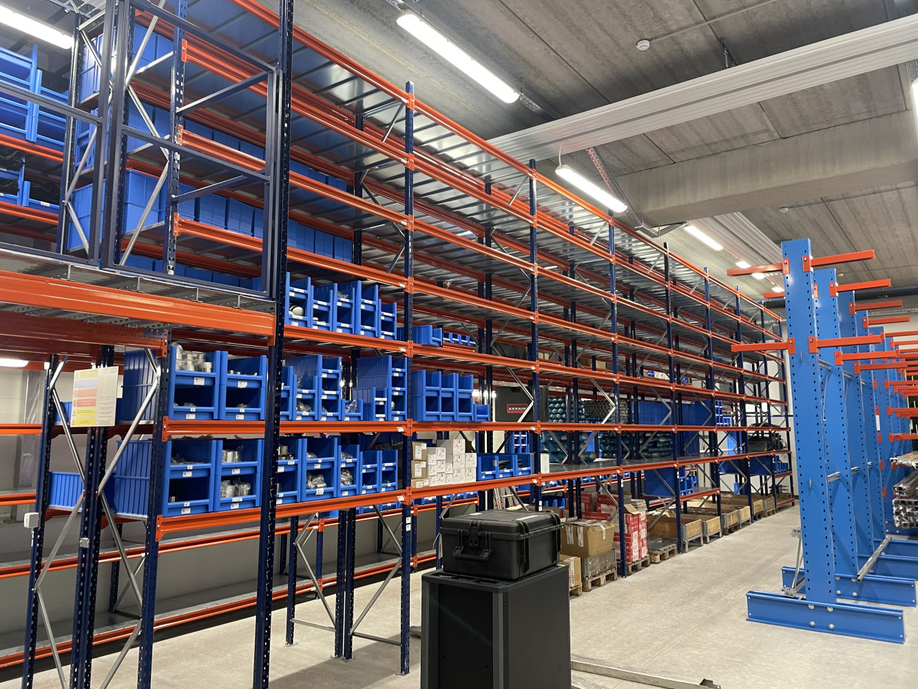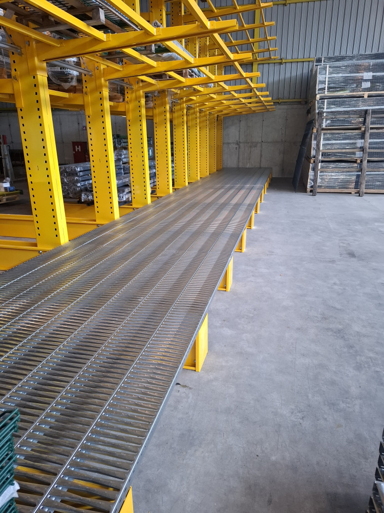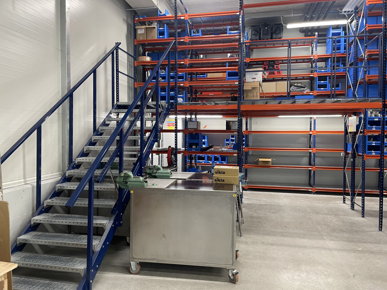 Projekt: Montaža konzolnih regalov model "CM" in MidiKim regalov s kovinskim podestom in stopnicami.